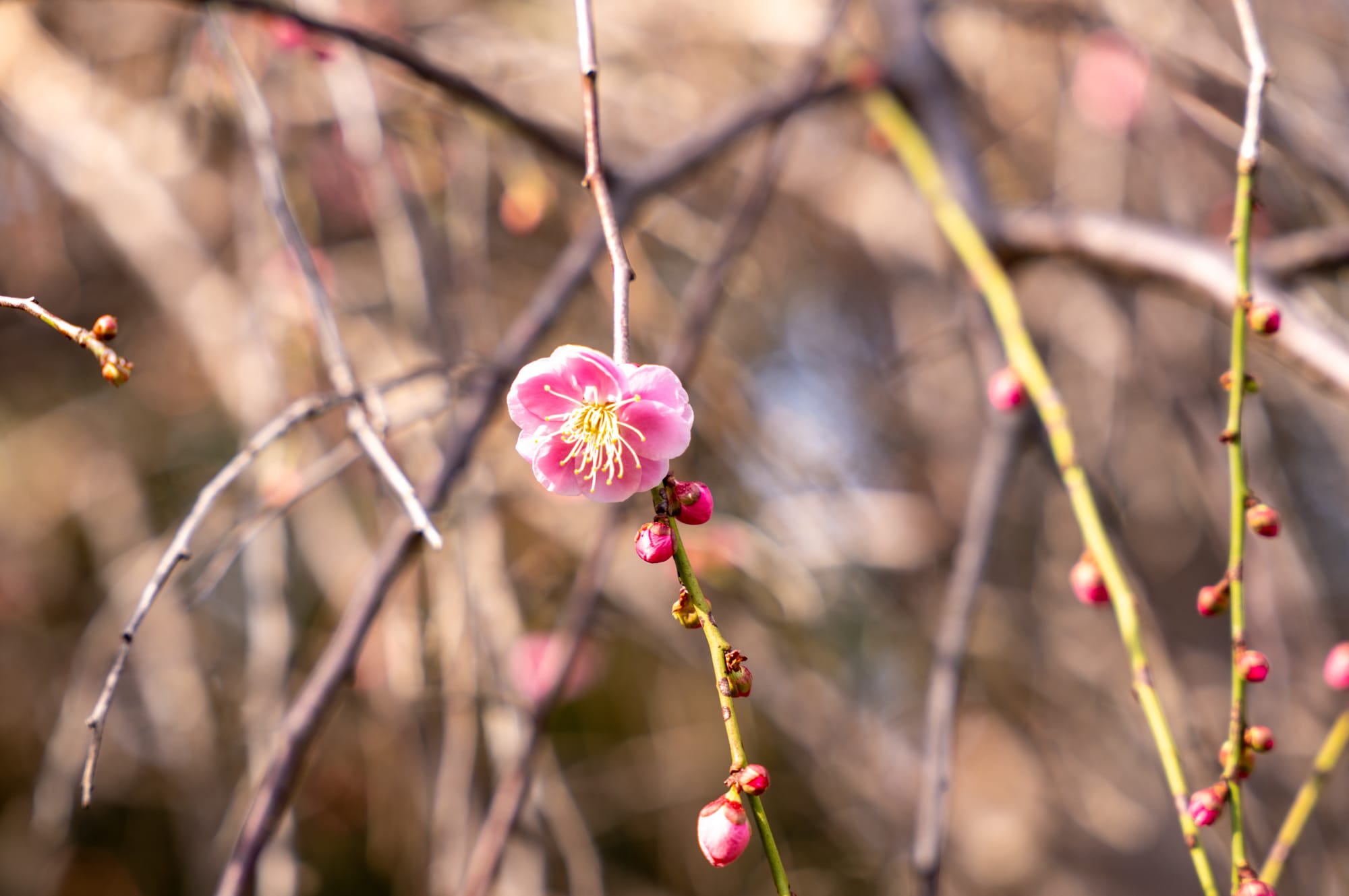 一輪、寂しげに咲く梅の花。
